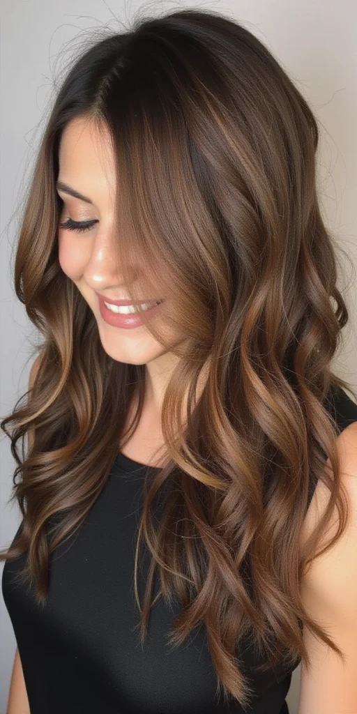 Chestnut brown balayage is a freehand painting technique that deposits lighter, warm-toned pieces throughout the mid-lengths and ends, mimicking the natural sun-lightened effect seen after months outdoors.