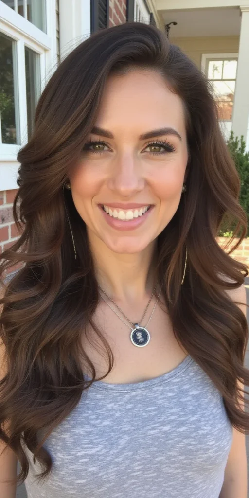 Chestnut brown hair takes on a richer, more dynamic appearance when styled with waves and curls. The natural bends and coils cause the color’s warm undertones to shift and catch light differently, creating the illusion of depth and dimension.